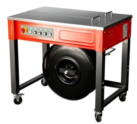 Машина предназначена для обвязки коробок, гофротары, пачек, плитных материалов и других видов продукции. Ограничения по размеру упаковываемого товара определяются заданной длиной стреппинг ленты — аппарат работает с изделиями разной ширины и высоты. Оператор лишь задаёт длину ленты и запускает процесс.